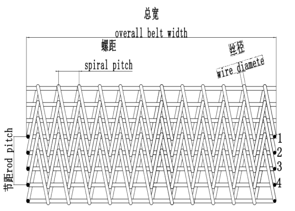 Compound weave belt is a variation of balanced weave belt. Right-hand spiral and left-hand spiral weaves form a very dense and smooth belt with straight rods and some crimped rods. The belt is ideal for conveying small products due to its high-density mesh, such as nuts, bolts, screws, nails, cookies, chemical granules, etc.
