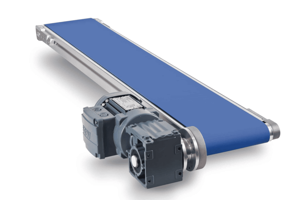 • Flat belt conveyors are well-suited for use in conjunction with other conveying equipment, such as sorting conveyor systems, robots, and inspection lines.