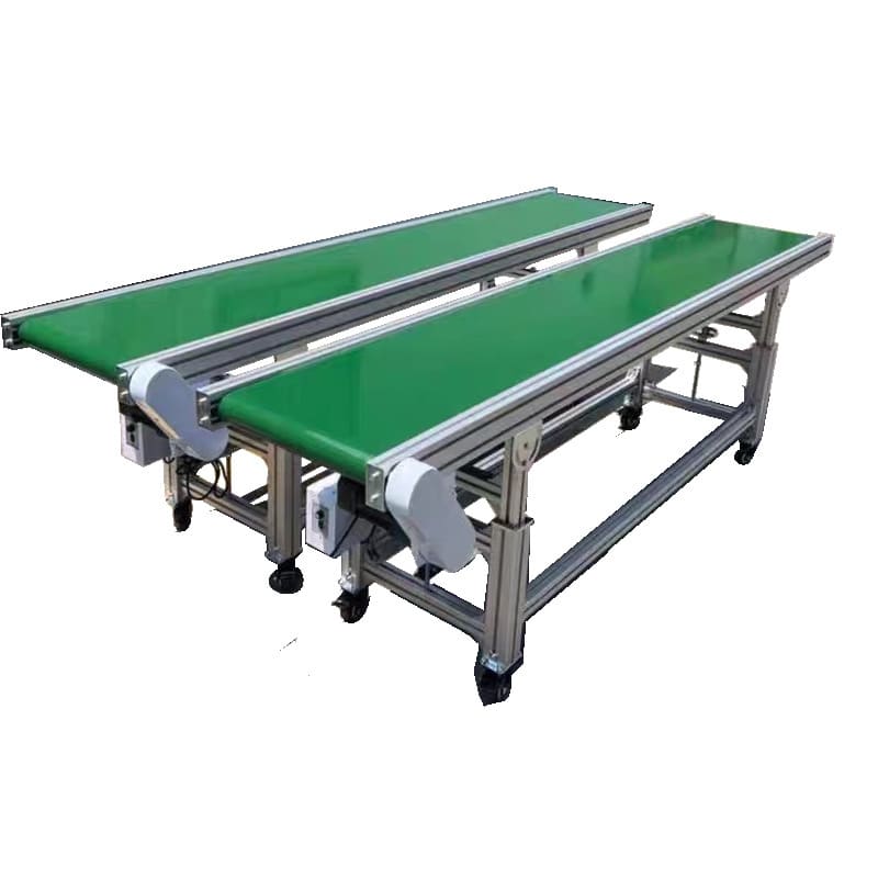 • As a continuous planar structure, the flat belt conveyor provides smooth transport and is suitable for most products, such as boxes, bags, and small parts.