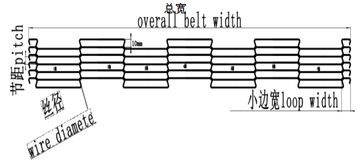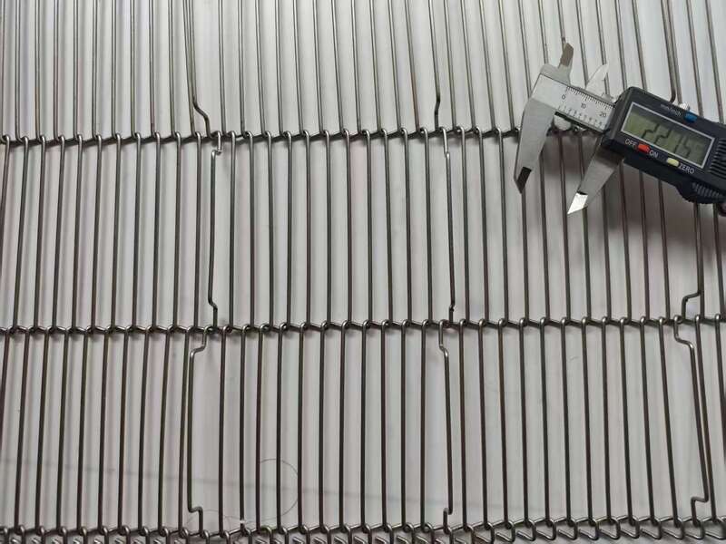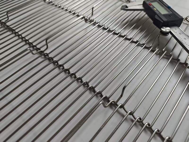 Pitch refers to the vertical center-to-center distance between two adjacent spiral wires. A larger pitch results in larger mesh openings and improved ventilation; conversely, a smaller pitch creates a denser mesh belt, making it suitable for conveying small products.